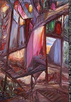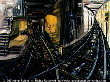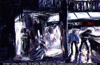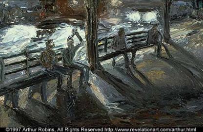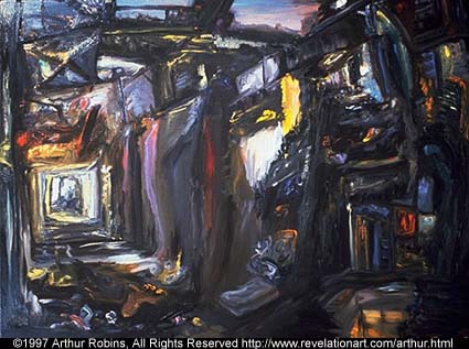 | Something About Arthur Robins Arthur Robins was born in Brooklyn, New York, in 1953. He began painting, sculpting and drawing at the age of two and a half. He attended art schools throughout his childhood, receiving many awards and scholarships. After attending Pratt Institute, he supported his art through woodworking, including cabinetry and furniture making, while showing in galleries and public spaces. Arthur has shown his art in Galleries, Museums,and on the Sidewalks of New York City and has lived exclusively off the sale of his art since 1987. He owned and ran two galleries, one in New York, one in California. In 1993 he was a founding member of A.R.T.I.S.T., a group that successfully litigated a Federal landmark case extending the First Amendment right of free speech to artists and fine art. He has sold original works of art to collectors from every state in the United States and in over fifty countries around the world. PUBLICATIONS/TELEVISION 2007-CurrentTV, YouTube-Arthur Robins Channel 2006-Luxury Living-Cable TV 2004-CBS NEWS-Lead story 11:00 PM News and Evening News 2004- New York Times-Front Page and Section B 2004-Inside Pool Magazine 2004-Messianic Times 2001-Billiard Digest [September] - article 1998-American Cueist [July] - magazine cover and inside article ARTnews [February] - article The International Economy 1996-Peace, Love & Harmony Cable TV 1995-ZDF-TV German Television 1994-Channel 5 Fox TV News Soundtruth - Cable TV Channel 9 WWOR News 1985-East Village Art 1981-New York Post 1980-Eyewitness News Vogue Magazine ONE PERSON EXHIBITIONS 2007-Aqueduct Raceway, Queens NY 2005-Sui Generis, NYC. 2005-Art Expo, San Francisco, Ca. 2004-U.S.Open Blilliards, NYC 2004-Las Vegas BCA Nationals, Las Vegas, Nevada 2003-National Pool And Billiards Expo, Las Vegas, Nevada 2003-Gallery Diamante, Carmel, Ca. 2002-2003-Art Now Gallery, Santa Cruz, Ca. 2002-Open Studio Tour, Santa Cruz, Ca. 2000-U.S. Open Billiards Tournement, Roseland, NYC 1999-Blinkfx-World HQ, NYC,NY 1999-The Friars Club, NYC 1998-Neuberger Museum of Art, Purchase, NY 1997-New World Art Center, New York, NY 1995-John McEnroe Gallery, New York, NY 1991-Exhibition Space, New York, NY 1985-Steven Adams Gallery, New York, NY 1980-United States Federal Courthouse, New York, NY SELECTED GROUP EXHIBITIONS 2007-Icosahedron Gallery, NYC 2000-Museum of the City of New York 1999-The New York Athletic Club, NYC 1999-The National Arts Club 1998-Museum of the City of New York, NY The Armoy Works on Paper, NYC 1997-Revelation Fine Art, New York, NY 1996-John McEnroe Gallery, New York, NY ACA Galleries, New York, NY 1995-John McEnroe Gallery, New York, NY 1991-Science Fiction Art Show, Tarrytown, NY 1990-Science Fiction Art Show, Philadelphia, PA 1989-Mural on Lite Elite, Broome & Bowery, New York, NY 1988-1989-Arthur Robins Gallery, NYC 1988-La Mama/La Galleria, New York, NY 1986-Michael Todd Room, New York, NY Steven Adams Gallery, New York, NY Now Gallery, New York, NY 1985-Steven Adams Gallery, New York, NY Now Gallery, New York, NY 1984-Nico Smith Gallery, New York, NY 1983-Mural on West Broadway, New York, NY 1981-Public Image Gallery, New York, NY 1979-United States Court House, New York, NY 1975-Tim Blackburn Gallery, New York, NY EDUCATION 1969-71-William Allen High School, Allentown, PA Top student of James P. Musselman 1971-Syracuse University, NY Painting, Sculpture & Drawing 1971-73-Pratt Institute, NY 1973-4-Independent Study with Sculptor Takashi Nakazawa 1974-5-Brooklyn Academy of Music Jazz Percussion 1977-Cabinet & Furniture Making apprenticeship under Don Boyce, Soho 1978-Cabinet & Furniture Making apprenticeship under Roger Scorcio 1976-85-Seido Karate under Master Tadashi Nakamura Attained Black Belt 1989-97-Artists For Israel Institute, NYC Studied Theology and Scriptures (Old and New Testaments) in original Hebrew and Greek. REVIEWS Revelations by Judy Collischan, Ph.D is the text from the gallery brochure for the summer 1998 show at the Neuberger Museum of Art ARTnews by Sarah Schmerler is a review of Arthur's 1997 show at the New World Art Center New York Nightmare - Arthur Robins's Expressionist Paintings by Donald Kuspit Inside Pool Magazine- by Robert Anthony |