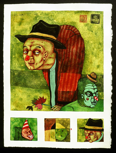 | kemper was born in oklahoma city to a british mother and a native-american father. growing up in the flatlands, he responded to the inquiry of what we wanted to be when he grew up with the sureness that might be expected of a child. there had already been a tarzan, but his bucket of plastic animals assured him he would be a veterinarian. later, with a new dad who picked a mean guitar and through the guidance of his grandmother he found a violin at his disposal and knew his destiny was to be that of a virtuoso. the voluminal bliss of being part of a full orchestra did not keep trouble from his heels. mischief was his playmate. so his mother enlisted him in tennis. his groundstrokes improved over the years, but he found his love in creating things. aspiring to draw as well as his sister and with the support of his high school art teacher and mother he spent three summers at the oklahoma summer arts institute which led him to believe that he might foster such an affection. after receiving a bachelor's degree in fine arts with a split major of ceramics and painting at the kansas city art institute, he studied printmaking in post graduate work at the university of oklahoma and photography at napa valley college. his curiosity led him to make photographs and paintings while traveling through europe, southeast asia, and india. his refuge, garden, and studio are in oklahoma city, oklahoma where he continues to dream. |
